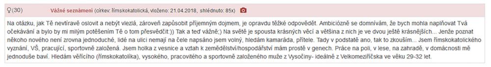Co se týče seznamek, zkušenosti s nimi nemám, ale má spolupracovnice ano.