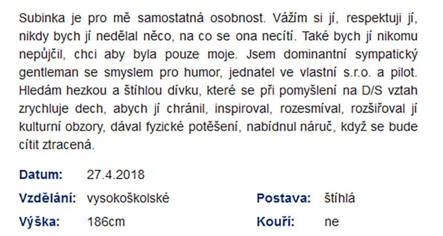 Dobrý den, měla bych opravdový zájem o seznámení s mužem.